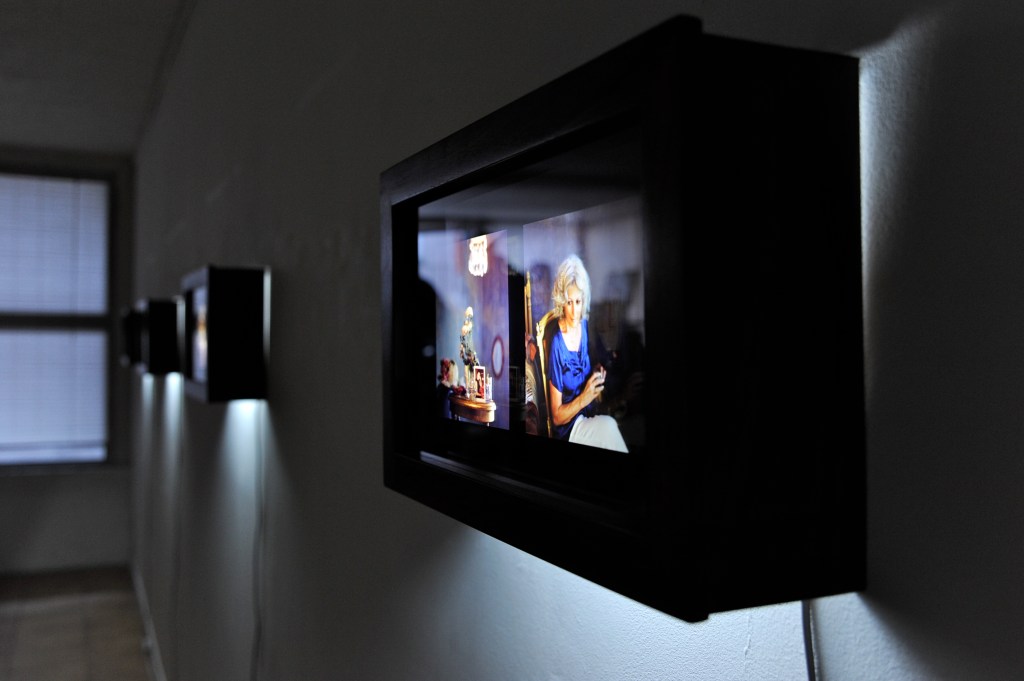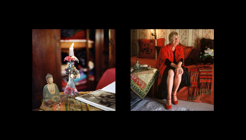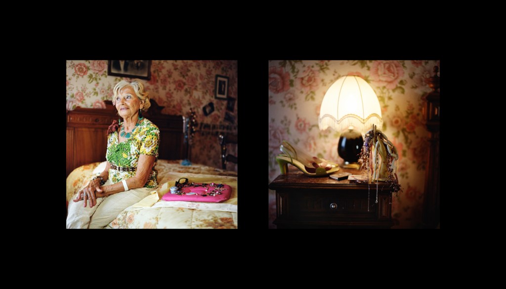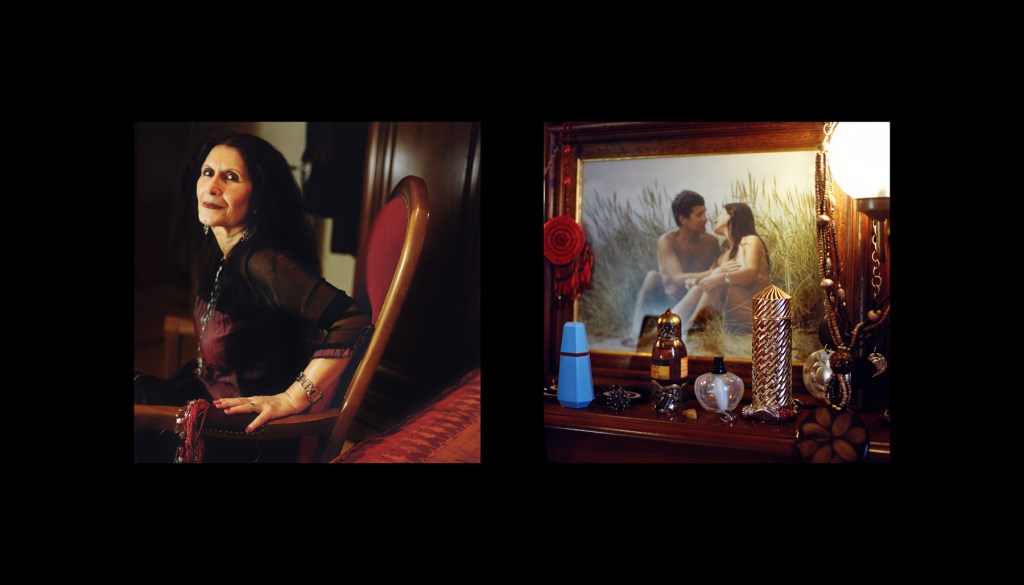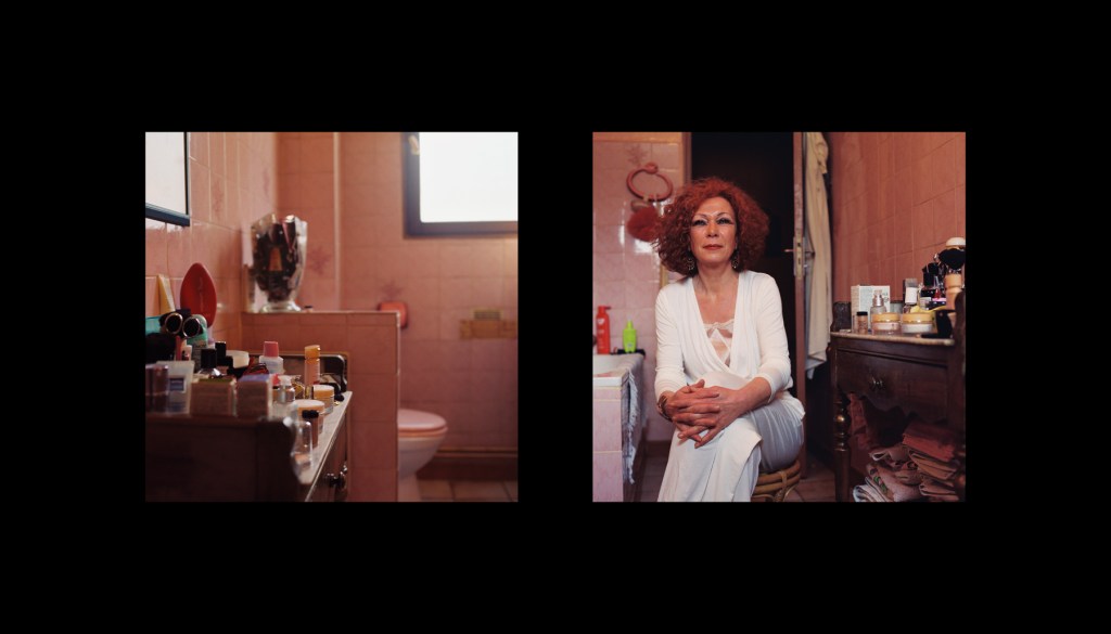 Femmes-Chambres, ce sont des portraits de femmes qui semblent prendre soin de leur apparence, se maquillent, s’habillent, mettent des bijoux avec une attention particulière. Je les photographie là où elles se préparent, devant leur coiffeuse, sur une chaise dans la salle de bain… Là où le « rituel contemporain » a lieu. A côté du portrait, en diptyque, figurent les objets du rituel, un élément du décor… L’ensemble est présenté dans des coffrets en bois, rétro-éclairés.