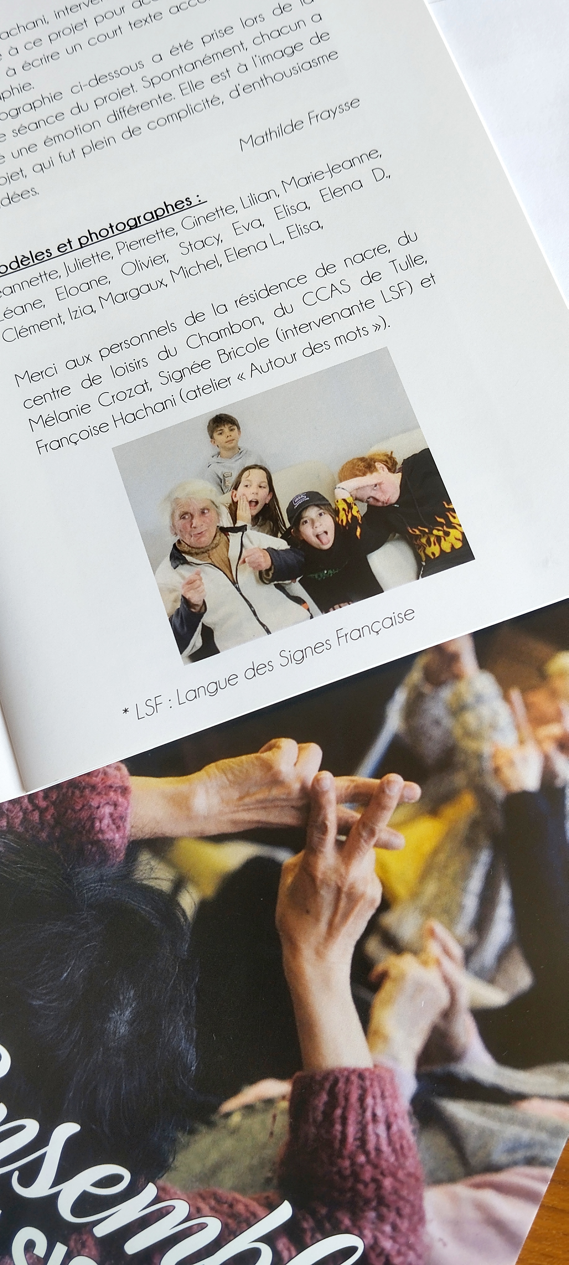2024/ Ensemble en signant, recueil témoignant d’un atelier mené avec des enfants et personnes âgées autour de la LSF et de la photographie. Edité par la Maison de la solidarité, CCAS de Tulle.